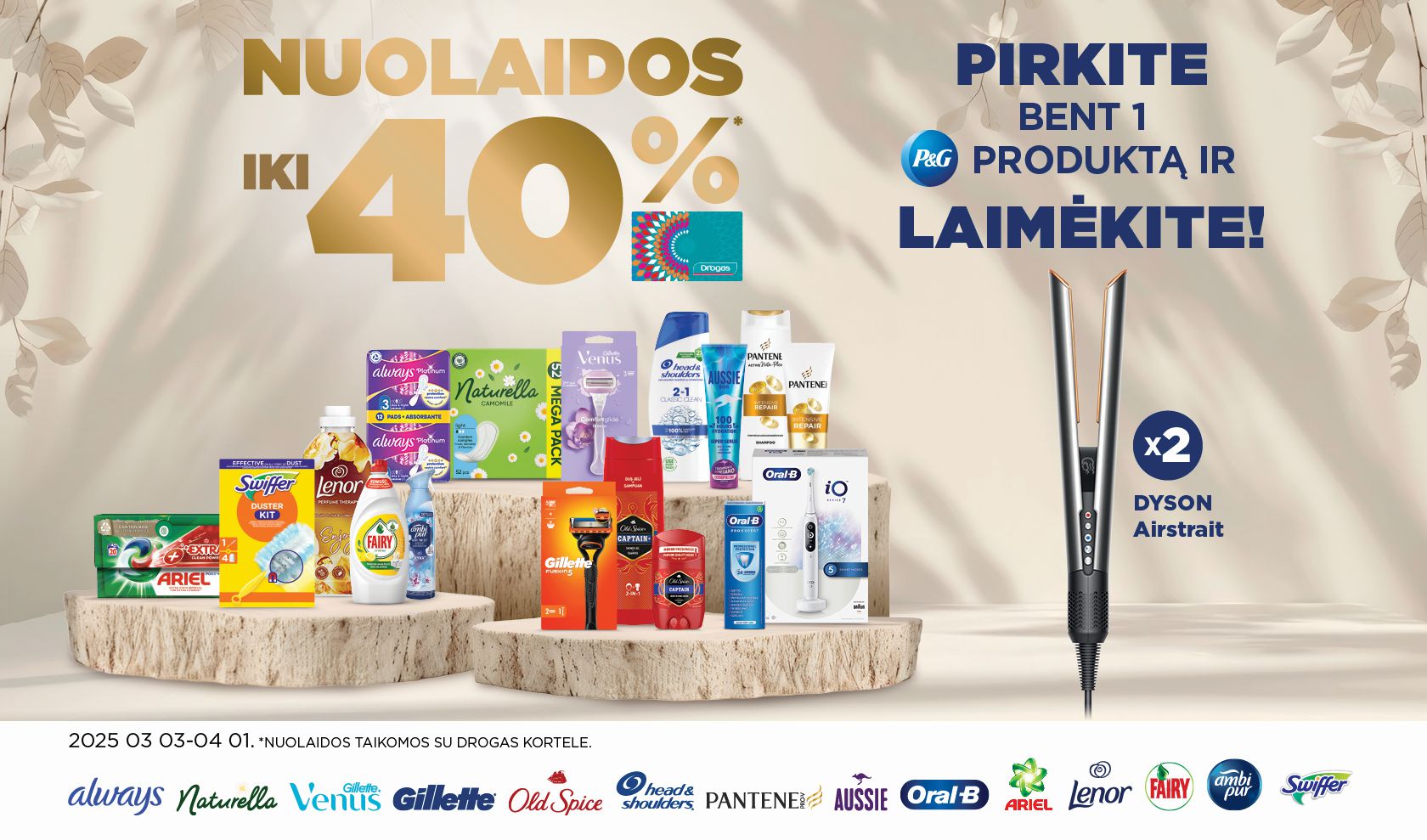 Žaidimo „PIRK bent 1 „Always“, „Naturella“, „Discreet“, „Tampax“, „Old Spice“, „Oral-B“, „Gillette“, „Venus“, „Head&Shoulders“, „Pantene“, „Aussie“, „Ariel“, „Lenor“, „Ambi Pur“, „Fairy“, „Swiffer“ produktą